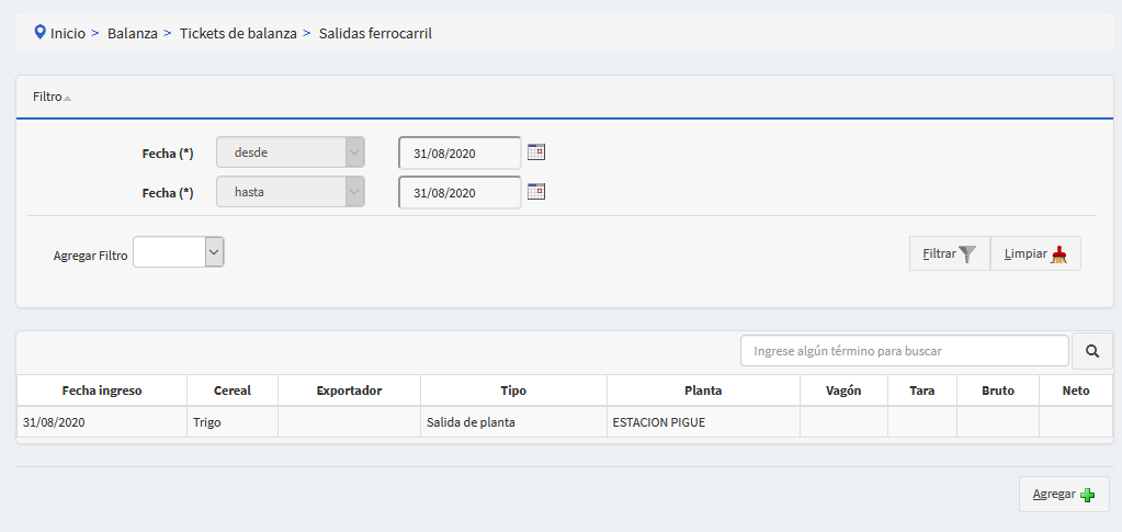 - De manera opcional se puede filtrar también por el nombre del camionero, por el cereal, el productor, la planta o tipo de entrada,planta, numero de ticket y si esta anulado o no.