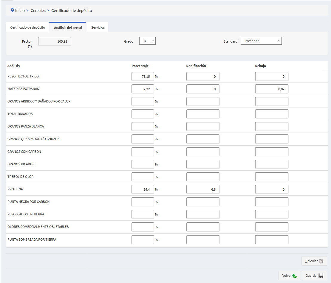 Cargar los porcentajes de los distintos análisis y presionar sobre 'Calcular'.