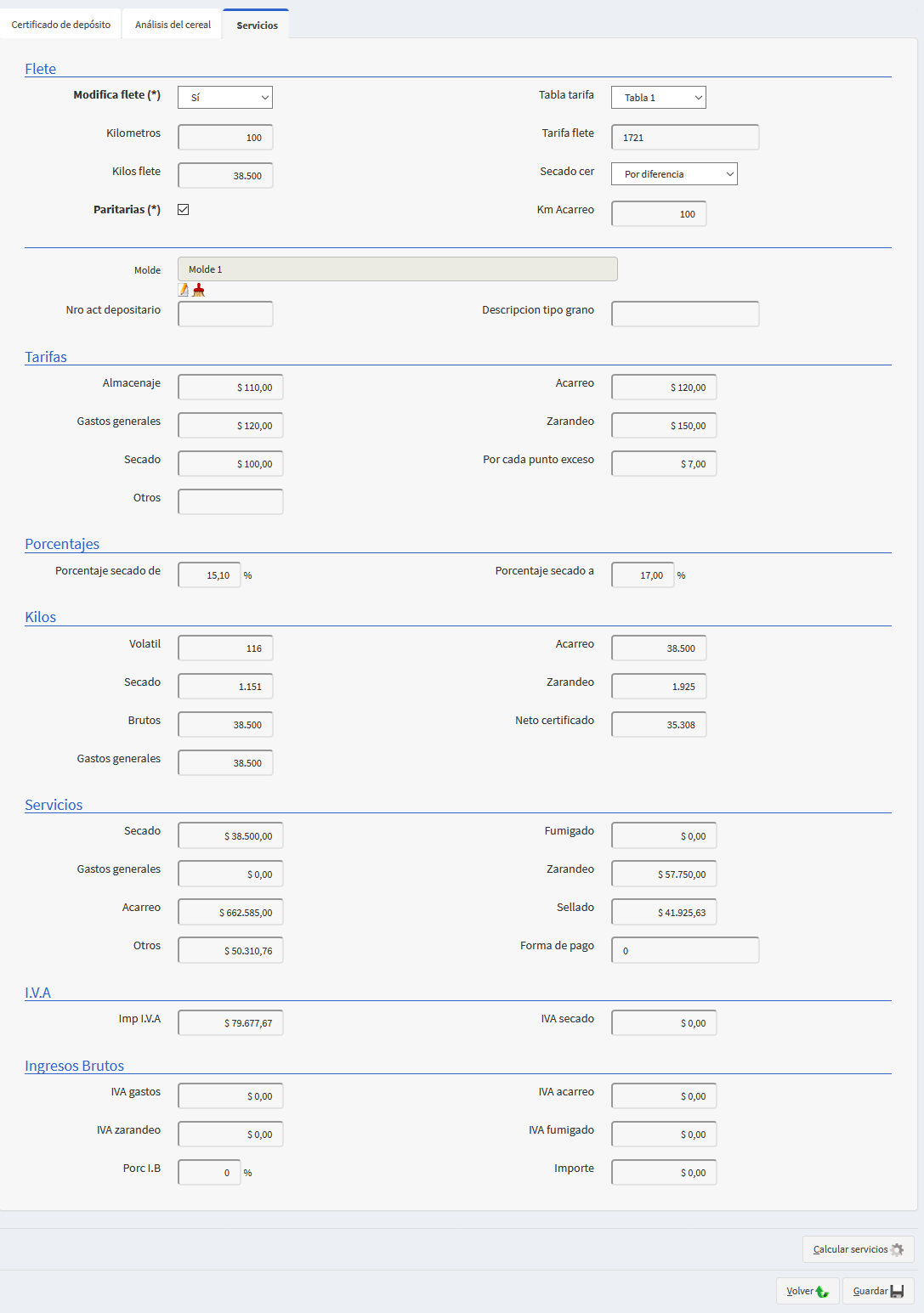 Presionar sobre 'Calcular Servicios'.