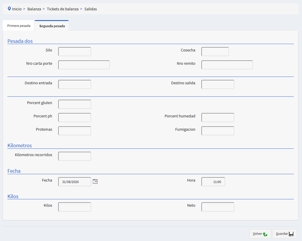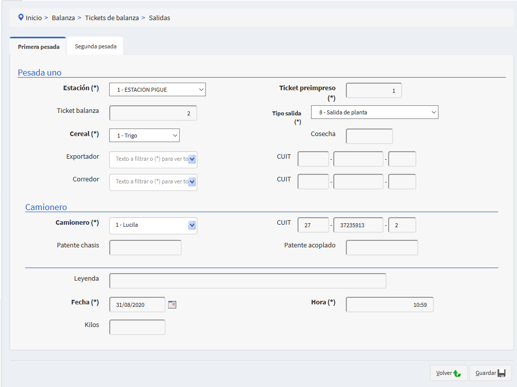- Se precarga el tipo de ticket, la planta, el cereal y la fecha y hora.